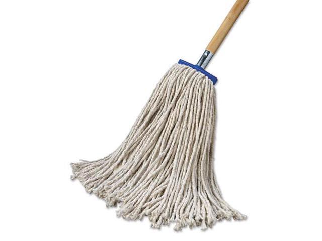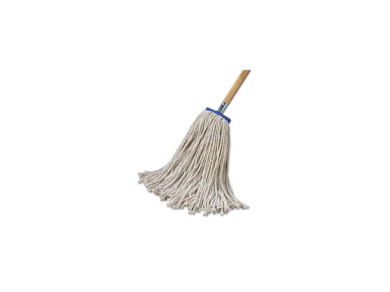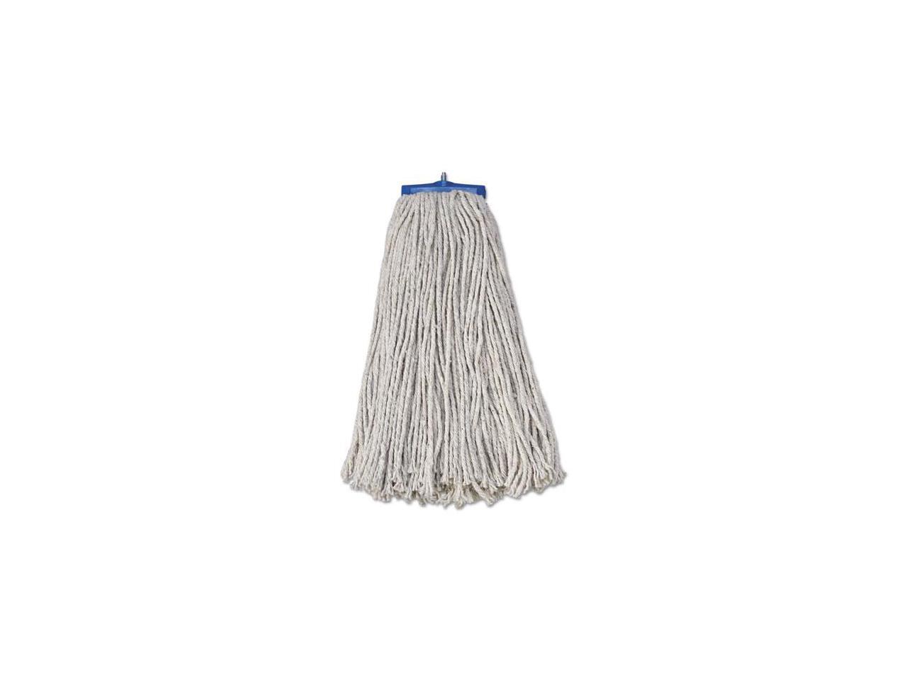 Premium, four-ply yarn mop lies flat on floor. Standard 1/4" threaded bolt head for easy screw-in mop head change and galvanized metal outerband. Use with lie-flat screw-in mop handle, sold separately.