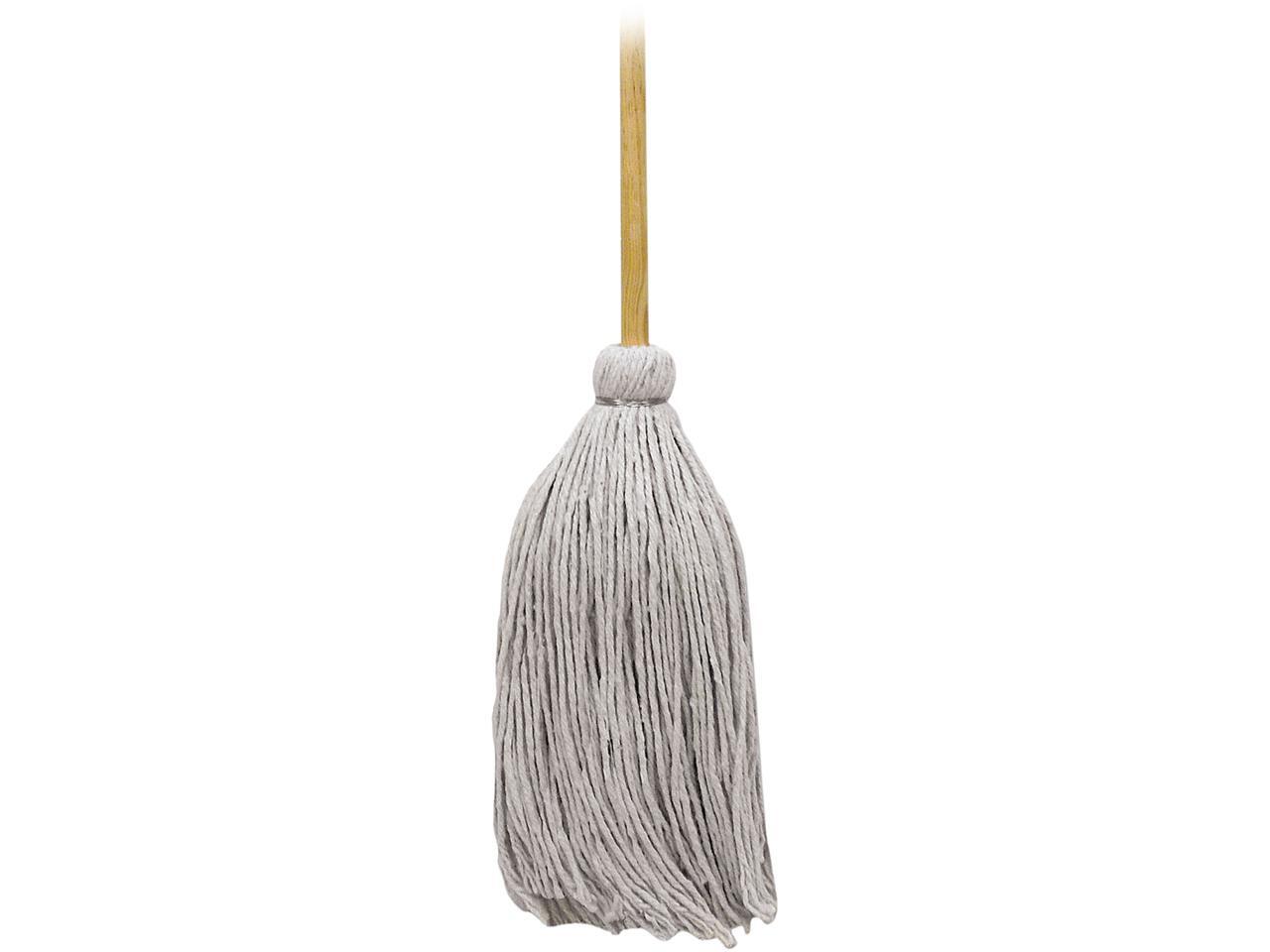 - Traditional deck mops with permanent wooden handles. White economy four-ply yarn.