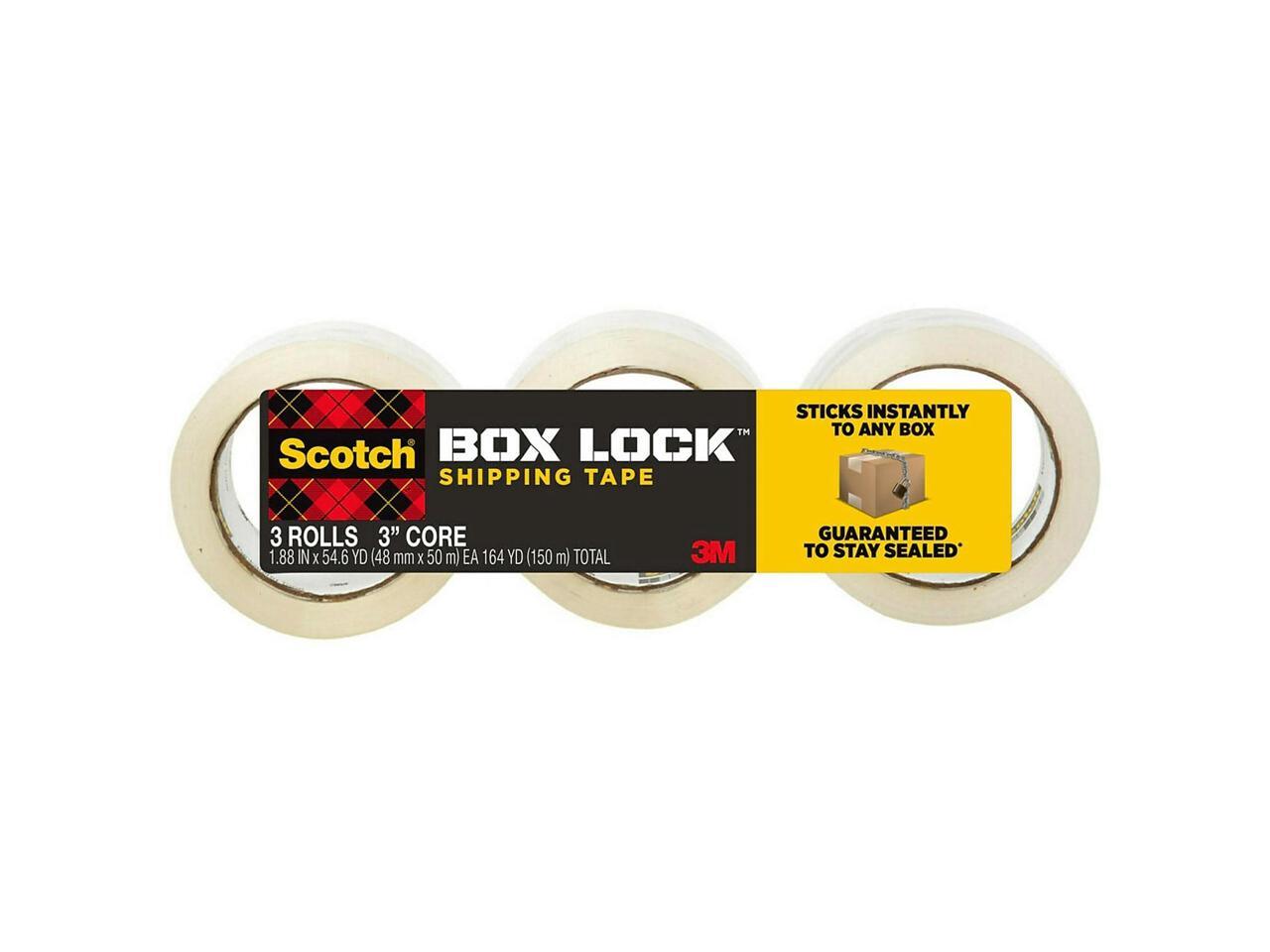 Scotch Box Lock Shipping Packing Tape 1.88 in x 54.6 yds. Clear 3/Pack (3950-3) 39503