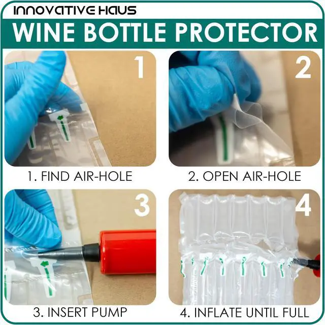 • Versatile: Air columns are individual chambers and if one punctures, the rest will still hold air. The bags absorb shocks from impact and are pillows for your fragile valuables. Simply blow up the bags, insert your bottle, and pack in your suitcase with confidence. Clear packing shows contents inside.