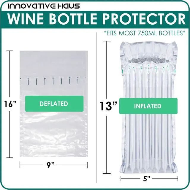 • Economical: Wine bottle protector bags measure 9" x 16" while deflated and 5" x 13" inflated.
