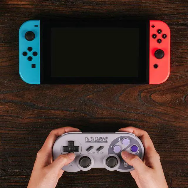 Description: The SN30 Pro is the world’s first, fully featured retro controller. It boasts a full button set with clickable joysticks, rumble vibration, motion controls, wireless bluetooth, rechargeable battery, home and screen shot buttons, and a USB-C connector. Not to mention a proper d-pad. 8Bitdo controllers are designed to be as versatile as possible with each of your modern devices. Easily pair your controller as an X-input or D-input device via bluetooth. You can even use it as a wired USB controller with the included USB cable. We're regularly updating the firmware with new system compatibility like the Nintendo Switch, Raspberry Pi, Retron5 and more. Support Regular Rumble Vibration (NOT HD Rumble) Motion controls Turbo Function USB-C Compatibility Windows 7 and above, Bluetooth 4.0 Android 4.0 or above MacOS 10.7 or above Stream Switch 1.0. 0- 3.0. 1 (NOT support NFC scanning) Controller Mode X-input, D-input, Mac mode, Nintendo Switch mode Connectivity Wireless Bluetooth 4.0 USB-C Power 480mAh Li-on rechargeable battery 18 play hours with 1-2 hour charging time
