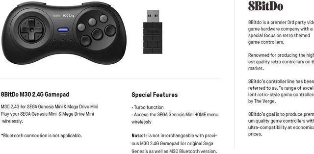 8Bitdo M30 2.4G Wireless Gamepad for Sega Genesis Mini and Mega Drive Mini - Sega Genesis