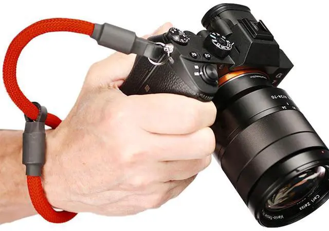 The red Climbing Rope Neckstrap from Hoodman lets you transport a camera and lens that weighs up to 5 lbs.