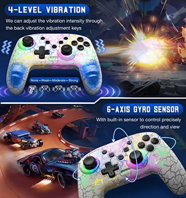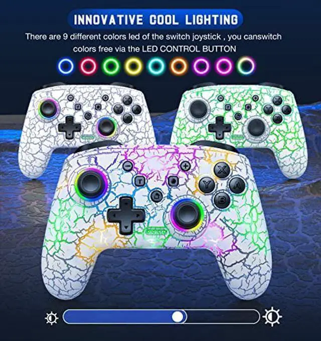 LED light colors: 8 colors and rainbow LED colors; three light modes: breathing light, constant light and close. In addition, you can adjust the brightness of the lights (back light button + rocker up/down button), adjust to the most comfortable state to start the game! The controller comes with a large capacity battery of 1000mAh, which is twice as large as other controllers. 3 hours of charging can last for about 12 hours, so you don't have to worry about the power even with the lights on.