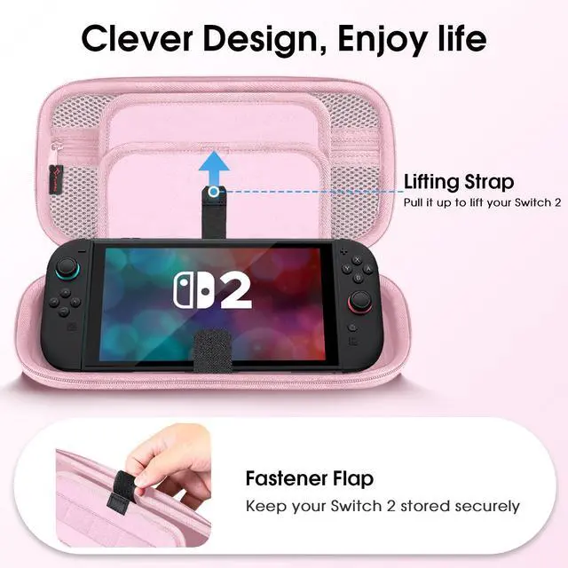 Built-in fastener flap to fasten the Nintendo Switch 2, so it won't collide with other things while in the case. Open and close easily with Double Zipper.