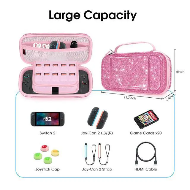 [Carrying Bag]: Hard EVA shell protects the Nintendo Switch 2 (2025) from accidental bump, drop and scratch. Soft Interior protects the Switch from everyday wear and tear.