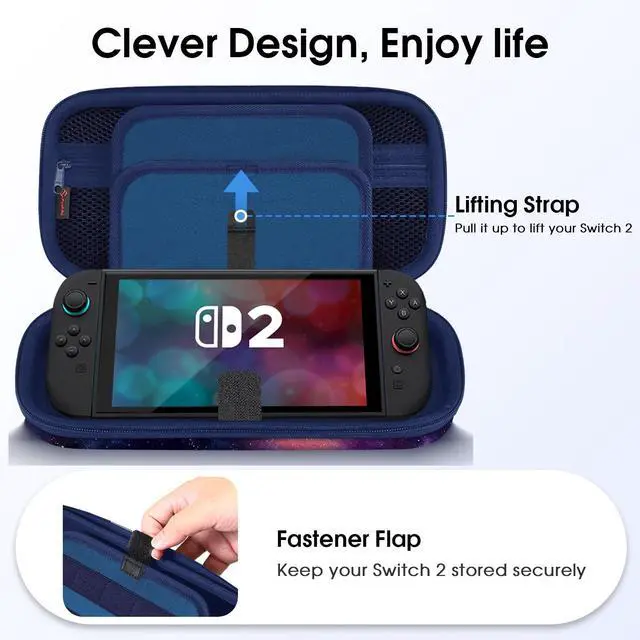 Built-in fastener flap to fasten the Nintendo Switch 2, so it won't collide with other things while in the case. Open and close easily with Double Zipper.