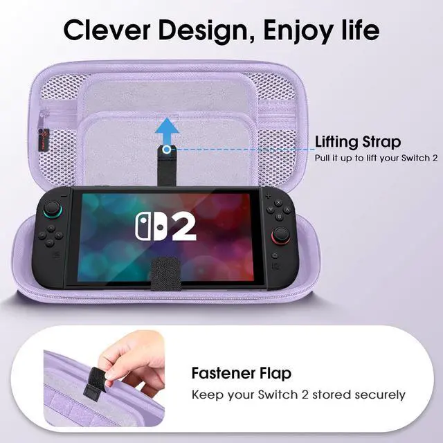 Built-in fastener flap to fasten the Nintendo Switch 2, so it won't collide with other things while in the case. Open and close easily with Double Zipper.