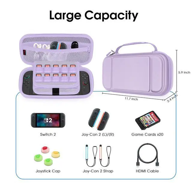 [Carrying Bag]: Hard EVA shell protects the Nintendo Switch 2 (2025) from accidental bump, drop and scratch. Soft Interior protects the Switch from everyday wear and tear.