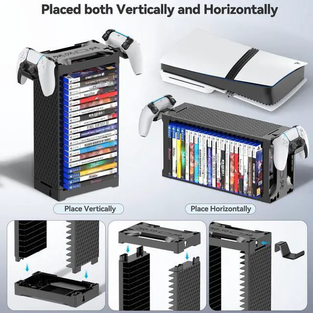 Space - Saving Marvel: This innovative games stand is a true space - optimization solution. Designed to hold up to 20 game discs in a vertical or horizontal orientation, it makes the most of your gaming area by occupying minimal floor or shelf space. This game tower design not only maximizes the utilization of vertical space but also keeps your gaming collection neatly organized and easily accessible.