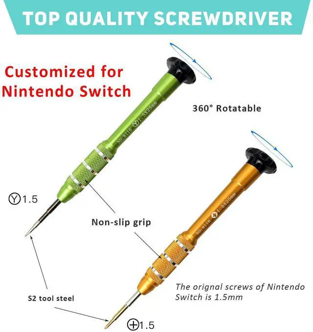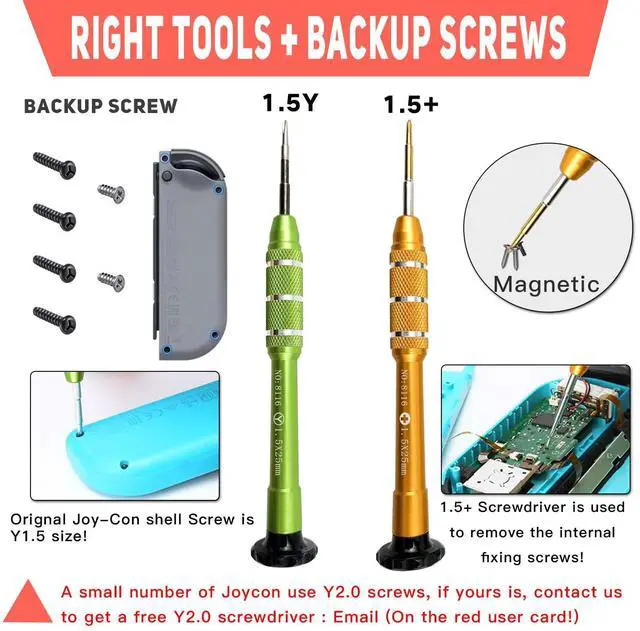 - 4 x Y1.5 Screws (Original Joy-Con shell screw) & 4 x +1.5 Screws