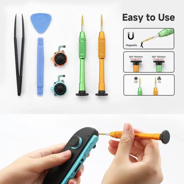 What You Get: Switch 2 Replacement Joystick * 2, Screwdriver * 2, Pry Bar * 1, Triangle Paddle * 1, Tweezers * 1.