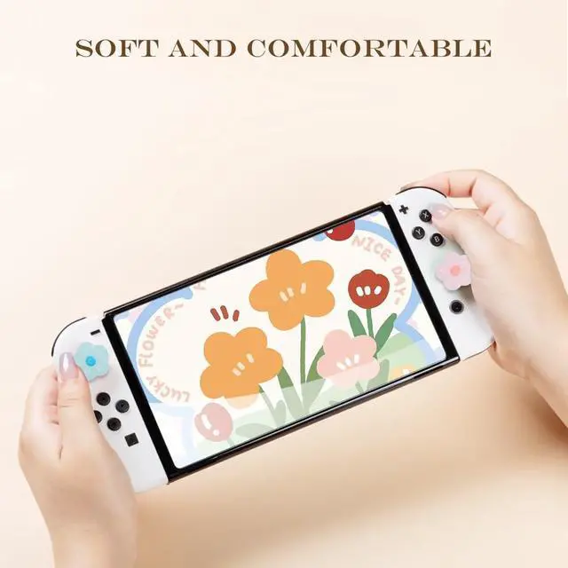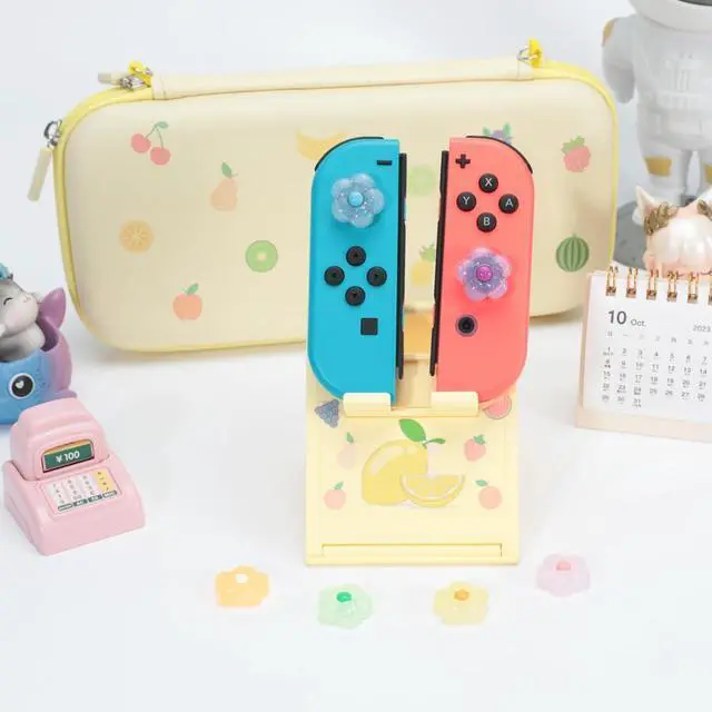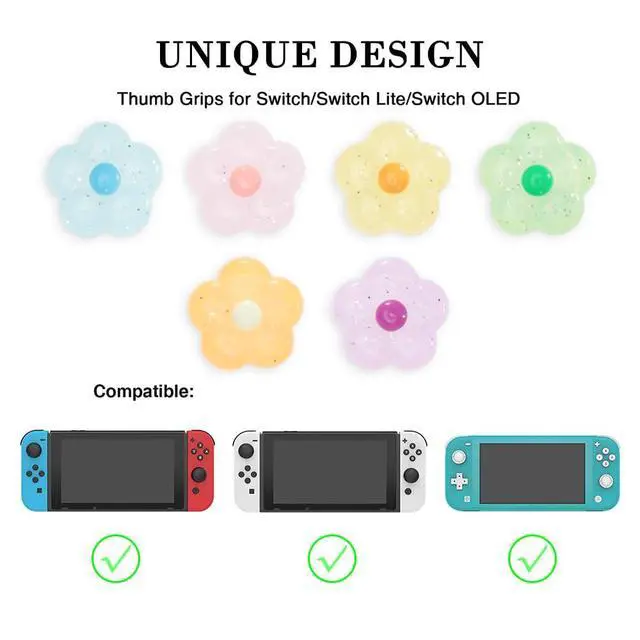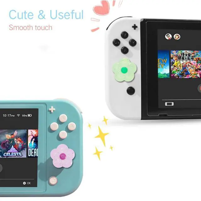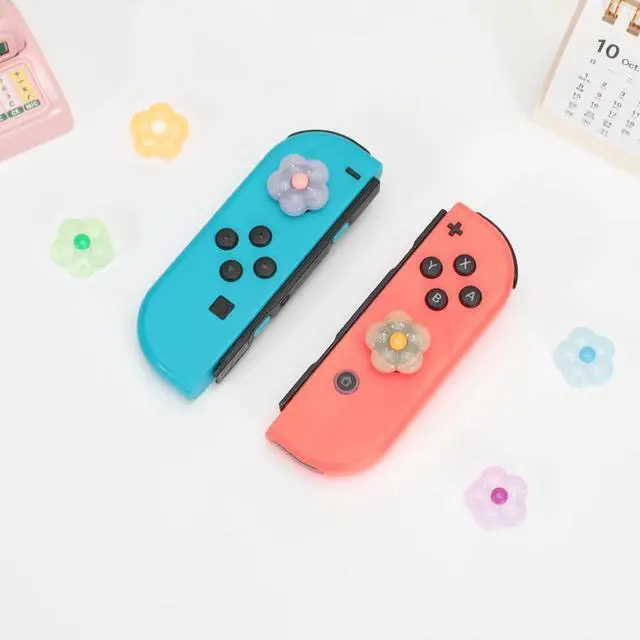 Cute Switch Joycon Thumb Grip Caps, Kawaii Glitter Flower Joystick Button Cover