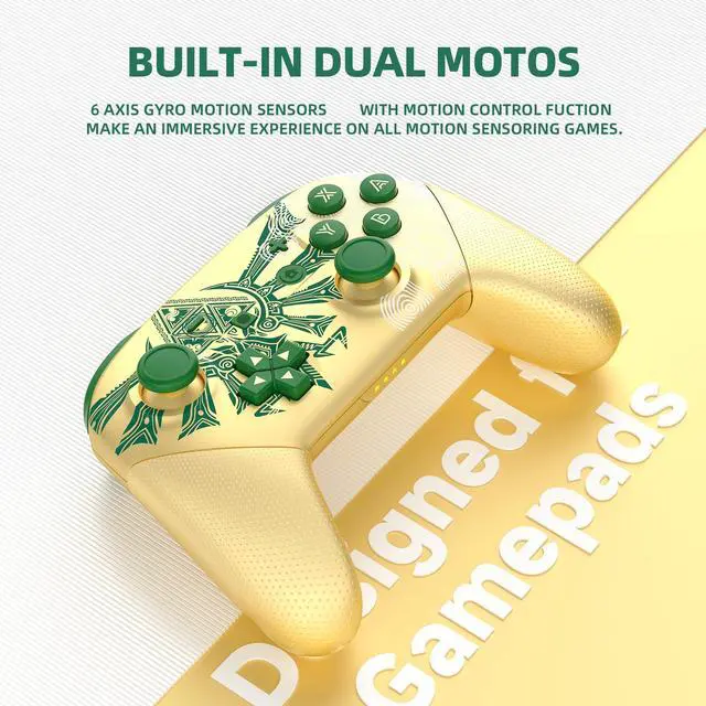 NFC Function & Double MotorsOur wireless switch controller supports NFC function, placing the card close to the sensing area in the center of the game controller to get special characters, special props and so on. And the gamepad controllers have two motors to provide dual vibration which brings players an immersive gaming experience.