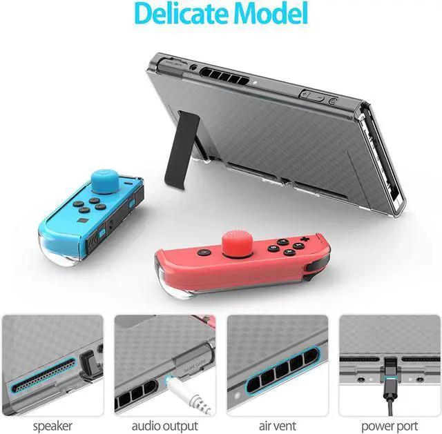 Case Compatible with Nintendo Switch Dockable Clear Protective Case Cover for Nintendo Switch and Joy-Con Controller with a Nintendo Switch Screen Protector and Thumb Grip Caps