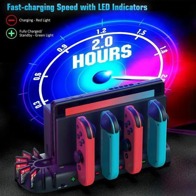 Safe&Reliable: This joycon controller charging station has built-in intelligent protection chips. These are designed to prevent over-currents, over-heating, over-voltage, short-circuits, and as a precaution, it will never over charge.