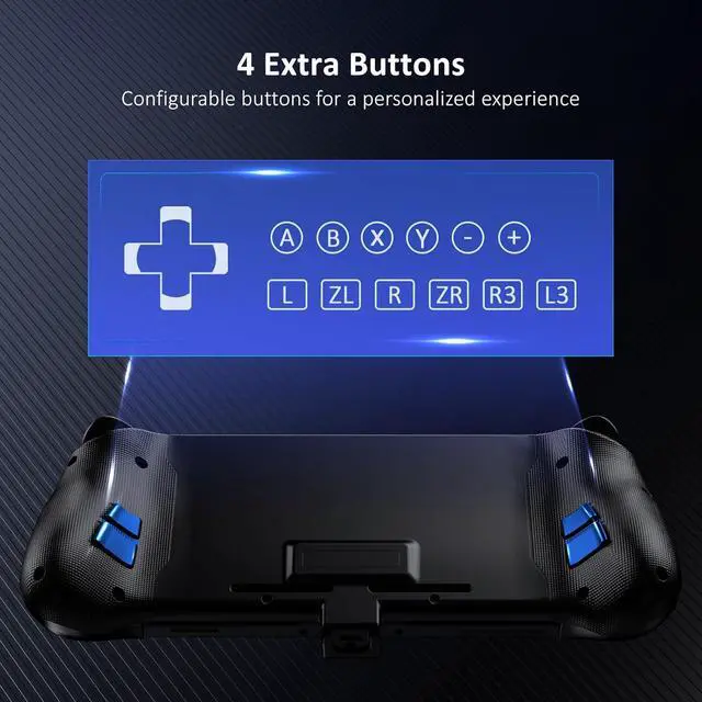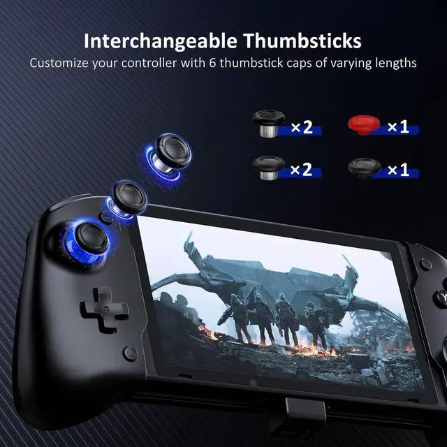 Customizable GameplayExperience versatility with three thumbstick heights and four programmable mapping buttons, offering up to 16 unique button configurations. Mapping functions include A/B/X/Y/+/-/L/R/D-pad/L3/R3/ZL/ZR.
