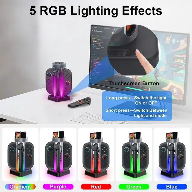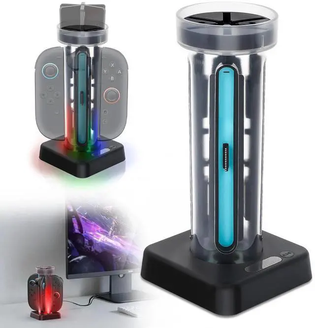 Looking for a sleek and efficient way to charge your Nintendo Switch 2 Joy-Cons? The Charging Dock for Nintendo Switch 2 offers fast, safe, and organized charging for up to four controllers at once. With 5 RGB lighting modes, you can personalize your gaming space with ambient effects to match your setup. The magnetic charging station for Nintendo Switch 2 ensures each controller aligns perfectly into place with minimal effort, while the built-in smart chip protects against overcharging and overheating. Real-time LED indicators let you know the charging status of each Joy-Con at a glance. This Magnetic charger for Nintendo Switch 2 also holds 6 game cards, and its non-slip base keeps everything steadyeven during fast-paced gameplay or desk movement.