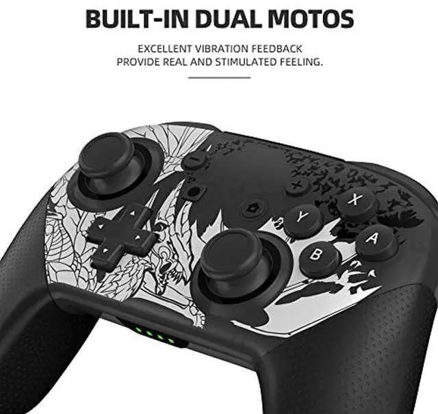 [(Multi-function)] Wireless Pro Controller supports wake-up function, strong anti-interference ability, stable connection signal, no delay and drift. With automatic sleep, charging prompt and low voltage warning function. You can long press the Home button for 1-2 seconds to wake up the sleep game, enter the screensh