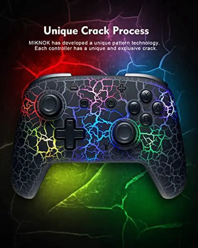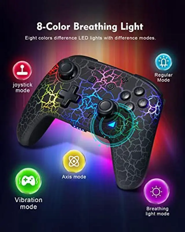 Switch Controller, Switch Pro Controller Compatible with Switch/Switch Lite, Wireless switch carck controller with adjustable 7 LED Colors/ Motion Control/Dual Vibration/Turbo Wireless Remote Gamepad