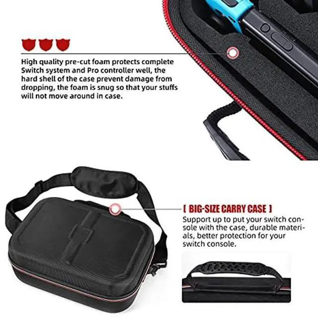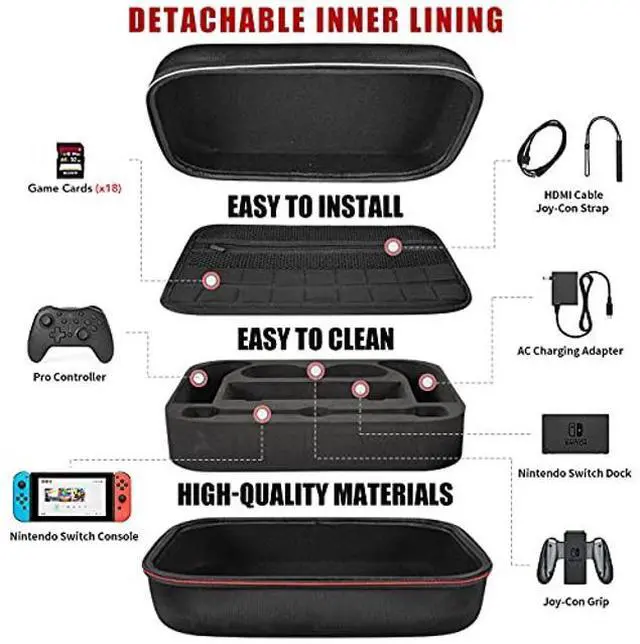 Use for: Nintendo Switch console, Dock, Joy-Con, Pro Controller, AC adapter, HDMI cable, Game cartridge*18, etc. Product Include1* Nintendo Switch Carrying Case. 1* Shoulder Straps