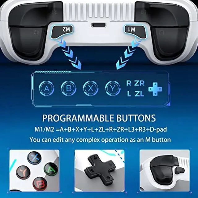 [(Programmable Buttons)] The top of the switch pro controller is equipped with M1/M2 buttons that can edit any complex operation as an M button.Pre-set long press, aiming, fighting game instructions and other complex operations, a button can be launched.