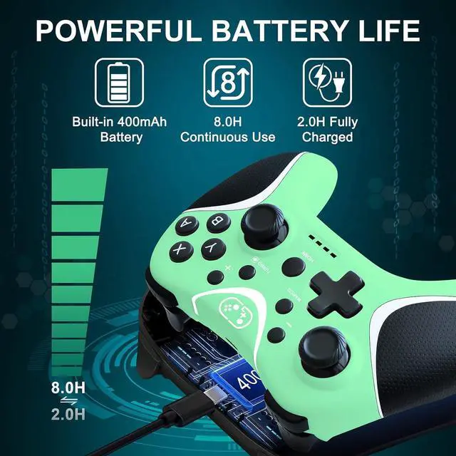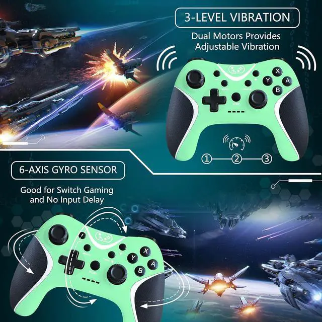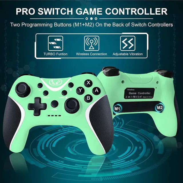 Wireless Switch Pro Controller,Nintendo Switch Controller with Programmable/Vibration/Turbo Compatibility with Nintendo Switch/Lite/OLED/Windows PC,Switch Remote Gamepad with 2 Thumb Caps - Green