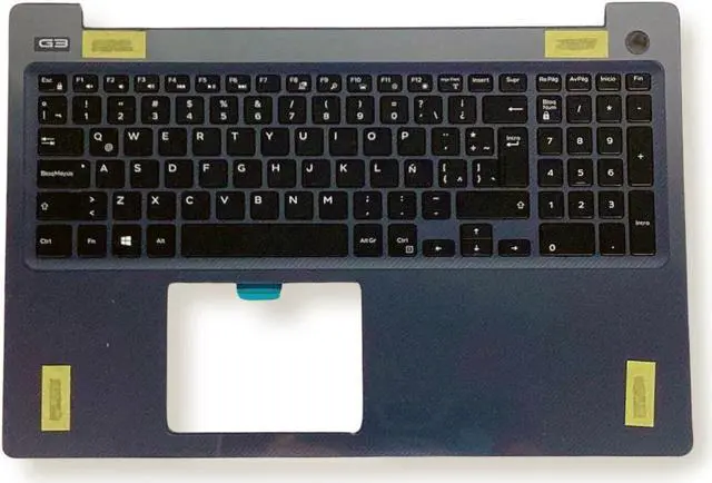 Dell G Series G3 3579 Laptop Palmrest Keyboard Spanish, identified by part numbers 1Y19N and 01Y19N, is a genuine Dell replacement component designed for the Dell G3 3579 laptop model. This palmrest assembly includes the keyboard and touchpad, providing a complete input solution for the laptop. The Spanish layout keyboard allows users to type in Spanish language, featuring the necessary characters and symbols. With its precision design and durable construction, it ensures seamless integration and reliable performance for your Dell G3 3579 laptop.