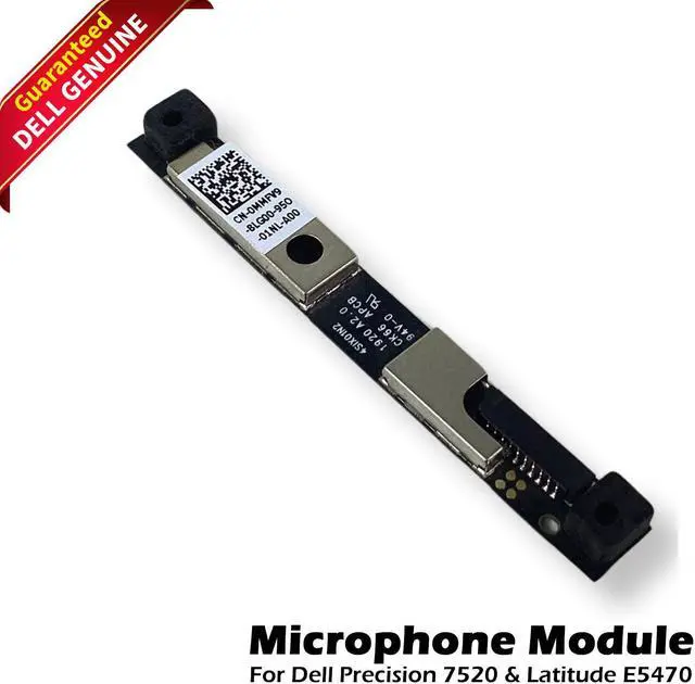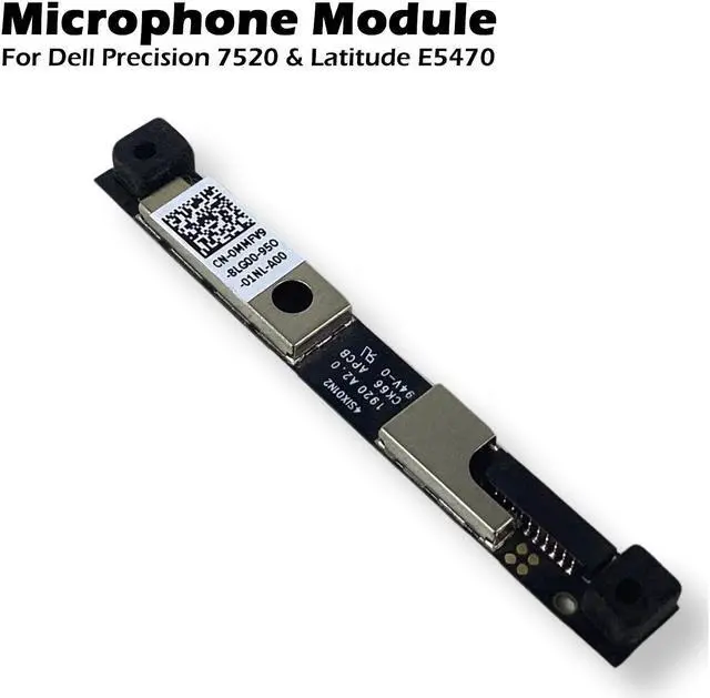 Dell Latitude E5570 E5470 Precision 15 7510 Dual Array Microphone Module MMFV9" is a replacement microphone module designed for specific Dell laptop models, including the Latitude E5570, E5470, and Precision 15 7510. This dual array microphone module enhances audio capture quality, providing clearer sound for voice calls, recordings, and video conferencing. The part number MMFV9 ensures compatibility with these models, making it an essential component for replacing a faulty or damaged microphone module, thereby restoring the laptop's audio input functionality.