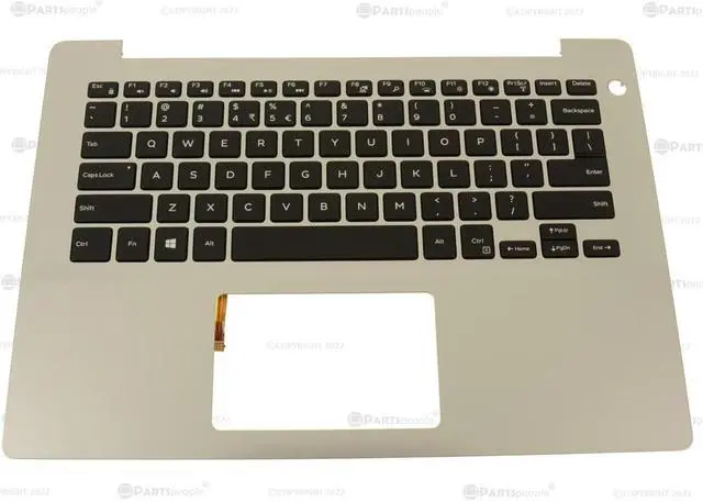Genuine Dell OEM Backlit Keyboard Palmrest Assembly for the Inspiron 14 (5485). The US International keyboard has currency characters on the 4 and 5 keys, a good replacement for the standard US-English keyboard.