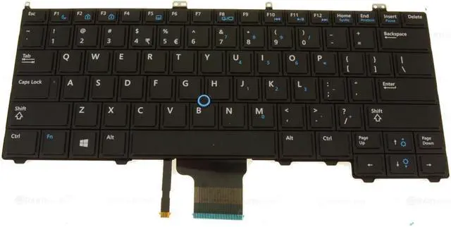 Genuine Dell original laptop keyboard, with US INTL key layout, for the Dell Latitude E7440 laptop. This keyboard includes center stick mouse pointer- with US International key layout. This keyboard is not backlit.