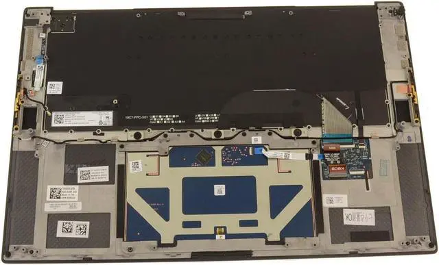 Dell XPS 15 (9500) Touchpad Palmrest Assembly with Spanish Language Keyboard- genuine Dell original Palmrest Assembly for the Dell XPS 9500 Laptop; includes touchpad module.