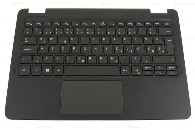 Genuine Dell Latitude 3120 QWERTZ keyboard and palmrest touchpad assembly. This assembly includes a keyboard with QWERTZ key layout. This QWERTZ key layout is not a good replacement for the standard US-English keyboards.