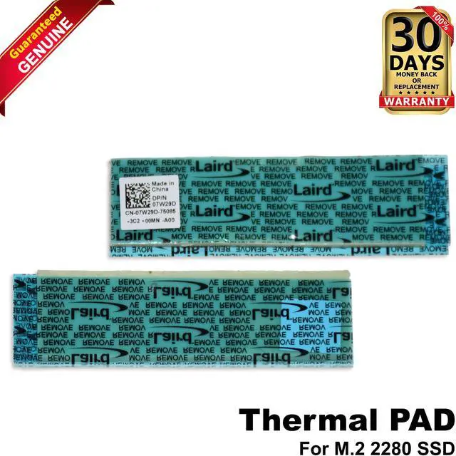 The Dell 7W29D thermal pad enhances thermal conductivity for M.2 2280 SSDs, enabling stable performance under sustained workloads. Designed for OEM-level heat transfer efficiency in modern desktops and laptops.