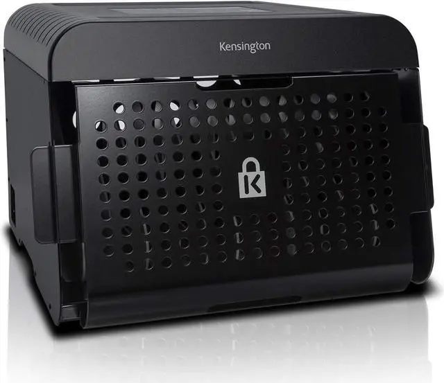 Security door accommodates a standard padlock and Kensington keyed cable locks for simple device protection (locks sold separately)