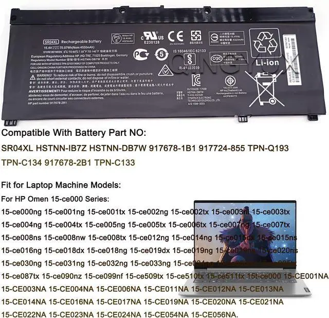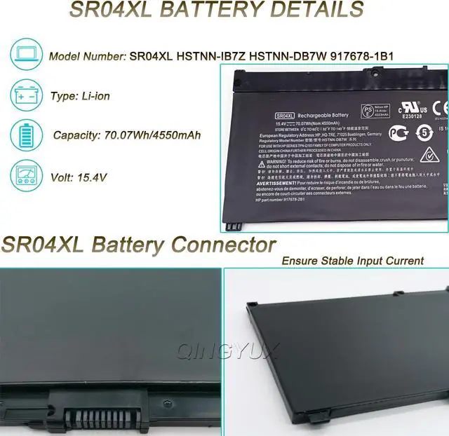 Replace Part Number: SR04XL HSTNN-IB7Z HSTNN-DB7W 917678-1B1 917724-855 TPN-Q193 TPN-C134 917678-2B1 TPN-C133