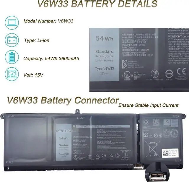 Specifications: Model Number: V6W33 Condition: Brand New Battery Type: Lithium Ion Voltage: 15V Capacity: 54Wh / 3600mAh