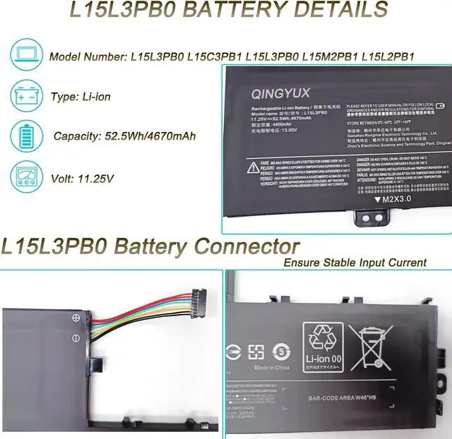 The Package Includes: 1X L15L3PB0 battery. Before purchasing, please open the back cover of the laptop to confirm the battery model and capacity.