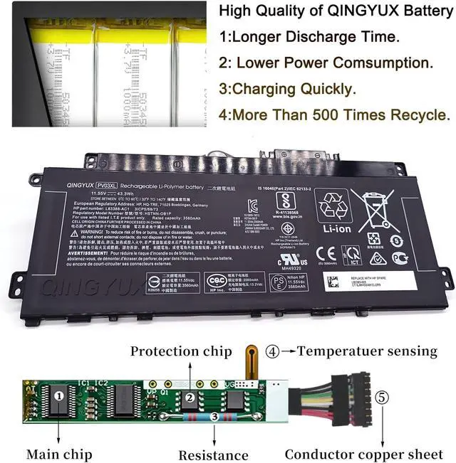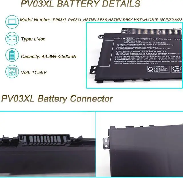 The Package Includes: 1X PV03XL battery. Before purchasing, please open the back cover of the laptop to confirm the battery model and capacity.