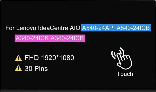 GBOLE 23.8" LCD Screen Replacement for Lenovo IdeaCentre All in One A540-24API A540-24ICB A340-24ICK A340-24ICB F0EL F0EM F0ER F0ER0080US F0ER00BRUS F0EM0003US Display Panel (Touch Version)