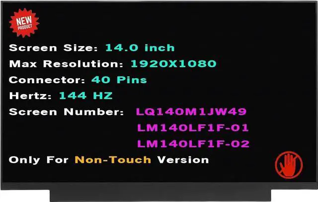 Purchase instructions: 1. You must verify that your specific laptop model is listed in our title or description. Buying the wrong model can damage your laptop; 2. You must verify your parameters (including maximum resolution: UHD, QHD, FHD or HD; Whether it has touch function; The connector is either 30pin or 40pin; Refresh rate 300Hz, 165Hz, 140Hz, 261Hz or other. After double checking the above information, you will receive the correct product.