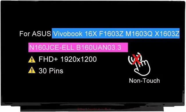 • Compatible Model: for ASUS Vivobook 16X F1603Z M1603Q X1603Z 1920x1200 30 Pins 60 Hz Non-Touch LCD Display Panel
