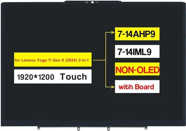 • [Important] Compatible with : Screen Assembly for Lenovo Yoga 7i 14" Gen 9 (2024) 2-in-1 7-14AHP9 7-14IML9 83DK 83DJ 83DK000DUS 83DK000FUS (NON-OLED) 1920 x 1200 Touch Display Digitizer