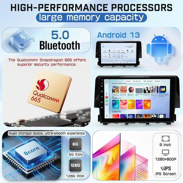 • Perfect Fit for Honda civi 2016-2021 Designed specifically for Honda civi Radio (2016-2021), this Android car stereo seamlessly integrates with your dashboard, ensuring a factory-like fit. No cutting or complex wiringjust plug and play!