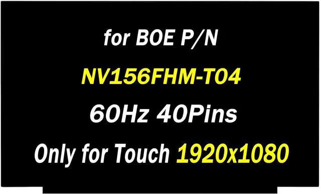 NV156FHM-T04 Replacement for BOE P/N NV156FHM-T04 15.6" 40 Pin 60Hz 1920x1080 LED LCD Touch Screen Display Panel Digitizer (Only for Touch Screen)