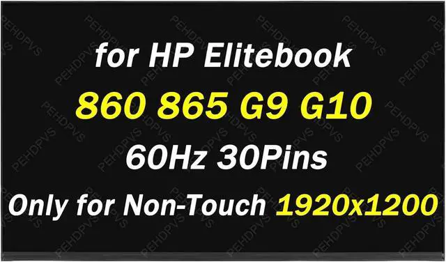 Replacement for HP Elitebook 860/865 G9 G10 for Elitebook 660/665 G10 G11 1920x1200 30 Pins 60hz 16.0" LCD Non-Touch Screen Display Digitizer Panel (Only for Non-Touch Screen)