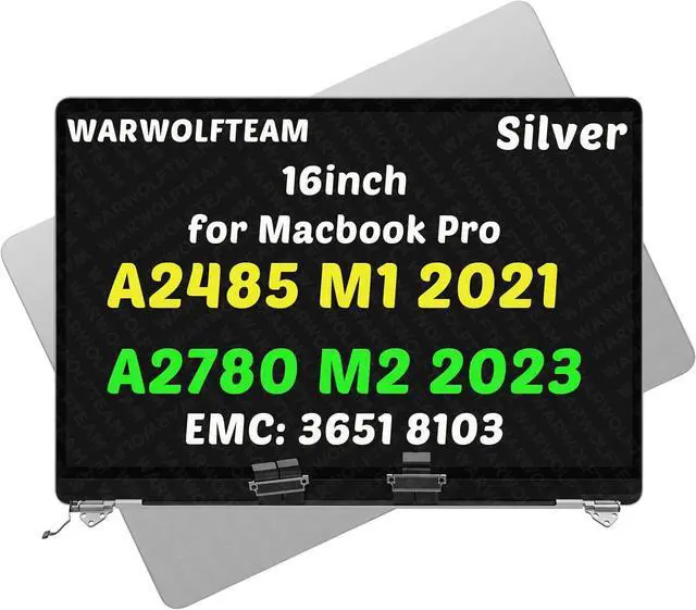 Compatible with MacBookPro18,1 A2485 M1 Pro M1 Max 2021 EMC 3651 661-21968 16" 3456 x 2234 Retina LCD Screen Digitizer Display Cover Cable Hinges Full Top Assembly (Silver)