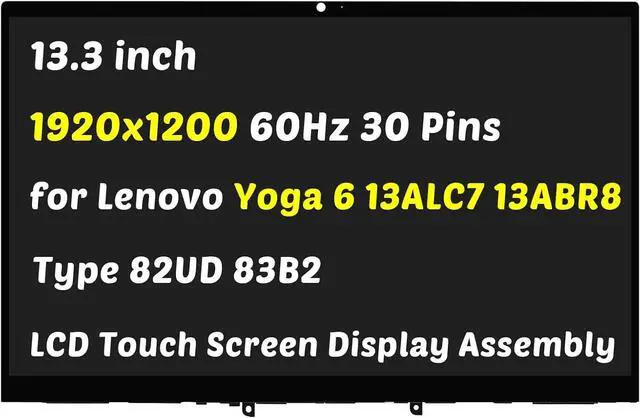 Replacement for Lenovo Yoga 6 13ALC7 13ABR8 Gen 7th 8th 2-in-1 LCD Display Type 82UD 83B2 83B2001UUS 5D10S39763 5D10S39766 13.3" 30 Pins LCD Touch Screen Digitizer Assembly (for WUXGA 1920x1200 Only)