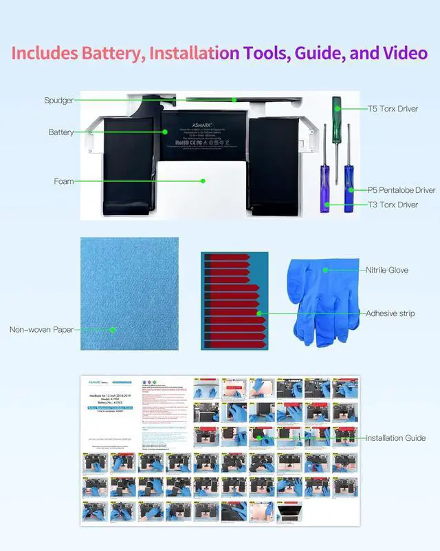 Battery ModelA1965Capacity4800mAh 55WhVoltage 11.4VC ompatibleMacBook Air 13-inch 2018/2019MacBook Model No. A1932Model IdentifierMacBookAir8, 1/MacBookAir8, 2EMC3184Part No. (2018) MRE82xx/A, MREA2xx/A, MREE2xx/A, MRE92xx/A, MREC2xx/A, MREF2xx/A, MUQT2xx/A, MUQU2xx/A, MUQV2xx/APart No. (2019) MVFH2xx/A, MVFJ2xx/A, MVFK2xx/A, MVFL2xx/A, MVFM2xx/A, MVFN2xx/A, MVH62xx/A, MVH82xx/A